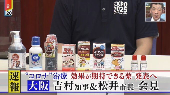 大阪・吉村知事が「イソジンはコロナに効く」と大々的に会見で発表。