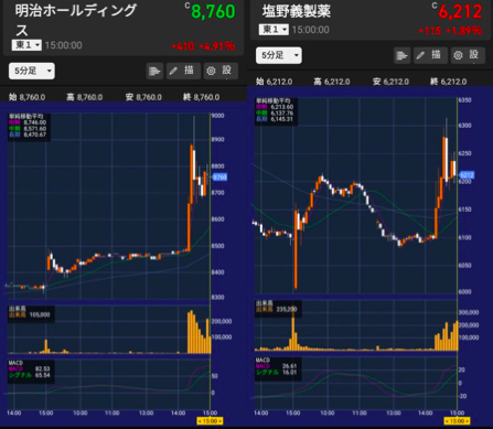 イソジンを手がける、明治ホールディングスの株価が一時7.7%高の8990円へ上昇。販売を担当するシオノギ製薬の株価も同様のようです。