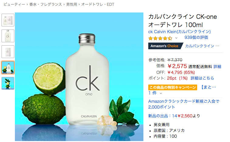 CK ONEではありませんが、同じブランド「ck Calvin Klein」の香水でいうと…